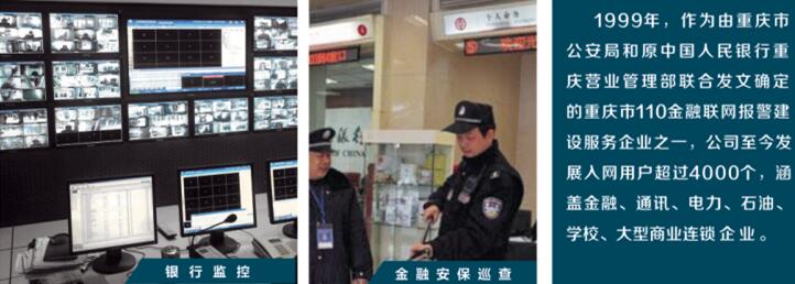 1999年,由重慶市公安局和原中國人民銀行重慶營業管理部聯合發文確定的重慶市110金融聯網報警建設服務企業之一,公司至今發展入網用戶近4000個,涵蓋金融、通訊、電力、石油、學校、大型商業連鎖企業。